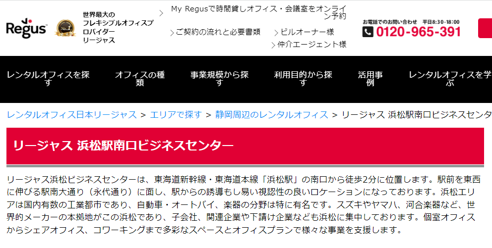 「リージャス 浜松駅南口」は、東海道新幹線・東海道本線「浜松駅」の南口から徒歩2分に位置します。 駅前を東西に伸びる駅南大通り(永代通り)に面し、駅からの誘導もしやすい視認性の良いロケーションです。(公式HPより) |