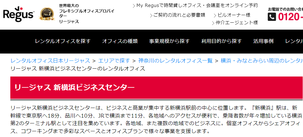 | 説明 | 「リージャス 横浜ブルーアベニュー」は、進化を続ける人気のビジネスエリア、横浜みなとみらいエリアの横浜ブルアベニュービルの12階に位置するビジネスセンターです。(公式HPより) |