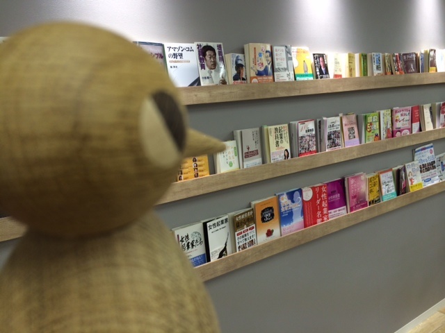 コラボレーションエリア内にある本棚の本を物色中。
