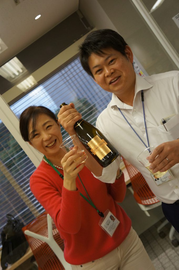 皆様、仕事を忘れて昼間からお酒を楽しんでいらっしゃいました。スタッフもこの日はお酒を頂戴しました。