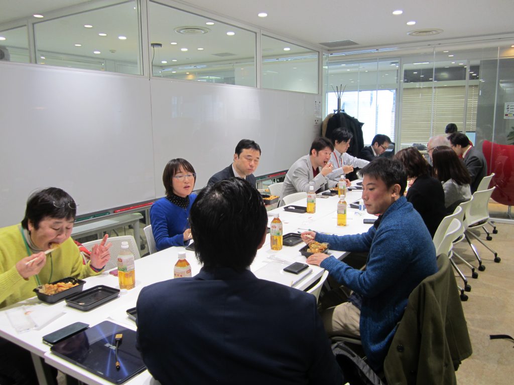 参加者が揃い、お弁当も届いたので、早速ランチを食べながら自身の事業内容や現在抱えている課題等を含めて自己紹介を行っていただきました。