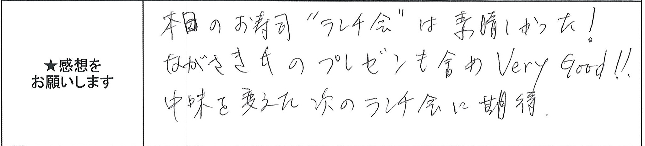 今回のように会員様が活躍される回を運営させていただきたいと思います。