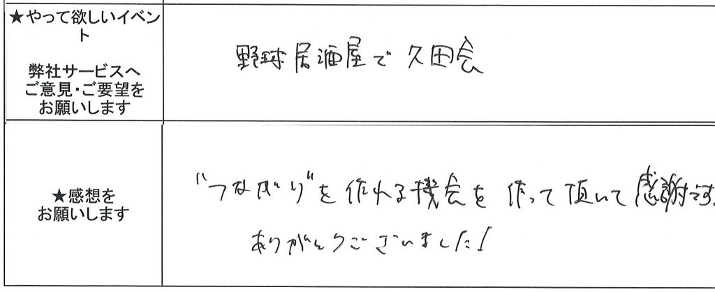 交流会のご案内は、会員様限定メルマガでお送りしますので、次回のお便りをお待ちくださいませ。