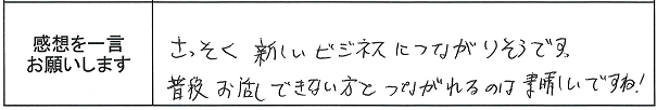 普段の営業時では、お仕事中ということもあり形式的な受け答えのみの場合が多いのですが、