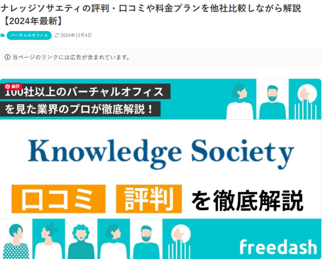 株式会社SowLabが運営するフリーダッシュの「格安おすすめ月額バーチャルオフィスをメリット・デメリットをふまえ徹底比較」と「ナレッジソサエティの評判・口コミや料金プランを他社比較しながら解説」に掲載いただきました。