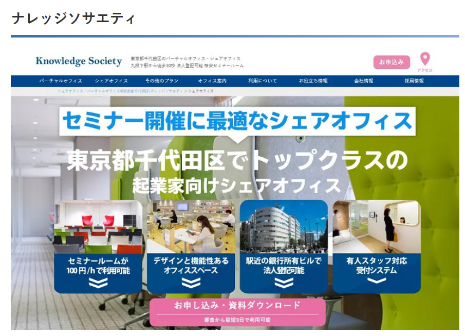 東京のバーチャルオフィス徹底比較(1)ナレッジソサエティ
