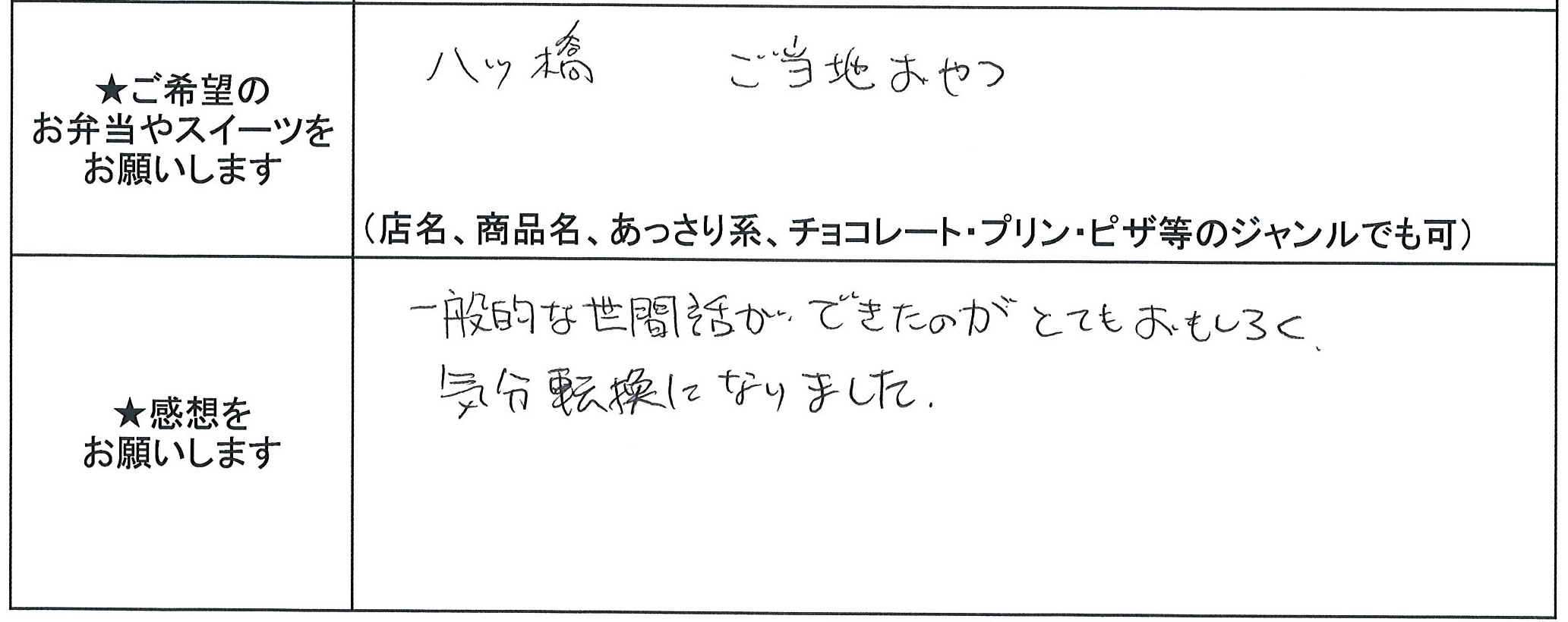 八ツ橋…夏に京都に行くので楽しみにしてください!!他にもご当地スイーツ検討させていただきます。