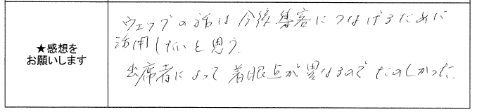 作り手とは異なる視点での皆様の鋭い意見は非常に貴重なものでした。
