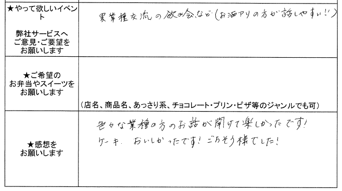 自身の集客ツールに対する意見をもらえる場として、また集客について様々な業種の方の見方や経験を共有する場として有意義な時間を過ごせました。