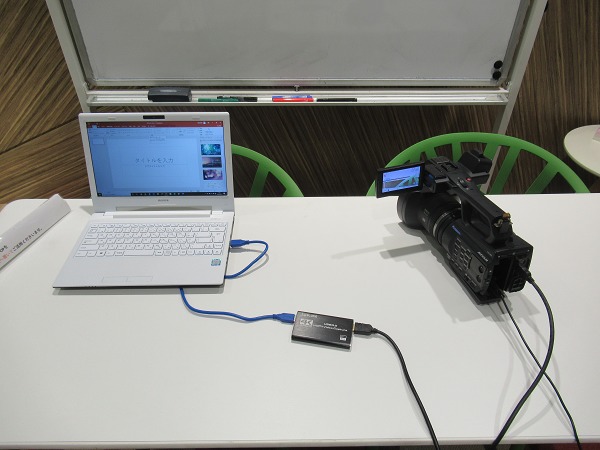 カメラ・HDMIビデオキャプチャカード・パソコンを下記の写真のように繋げます。