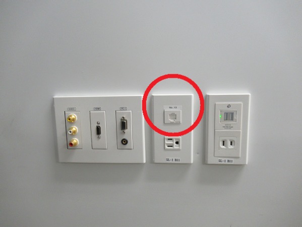 LANケーブルは備え付けのものがございますので、壁や床(中継コネクタ)のLAN端子とPCに接続の上ご利用ください。