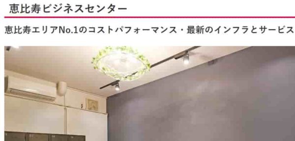 実際にオフィスを借りることなく、登記も可能。また、必要に応じて会議室といったワークスペースも低料金で利用できます。 さらに、電話や郵便受け取りなどのサービスを加えることで、毎月わずかな費用でもオフィスを借りているのと同等の機能を持つことができ、SOHOやスタートアップに最適なプランです。 圧倒的なクオリティーでビジネスのスタートを応援します。(公式HPより) 恵比寿駅からのアクセスの良さが非常に魅力的です。会議室利用や郵便転送のオプションも追加料金で利用することができます。 |