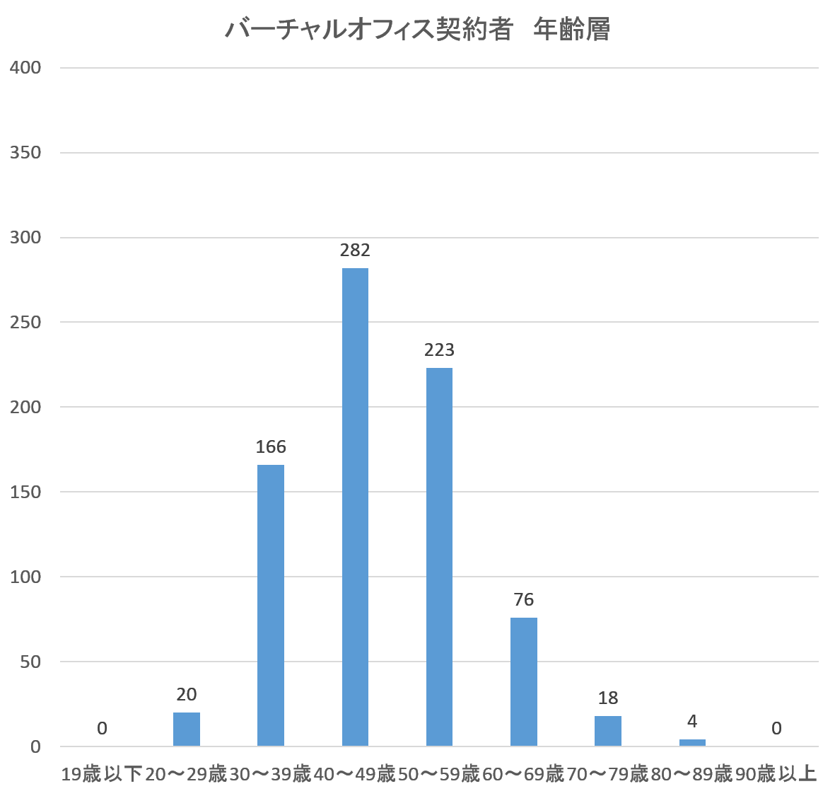 シェアオフィス・バーチャルオフィス@東京都千代田区|ナレッジソサエティ > バーチャルオフィス > バーチャルオフィス > バーチャルオフィスの契約数が800契約を突破 > バーチャルオフィス 年齢
