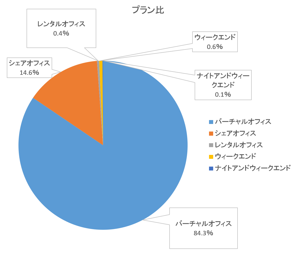 シェアオフィス・バーチャルオフィス@東京都千代田区|ナレッジソサエティ > バーチャルオフィス > バーチャルオフィス > バーチャルオフィスの契約数が800契約を突破 > プラン比2018年10月分