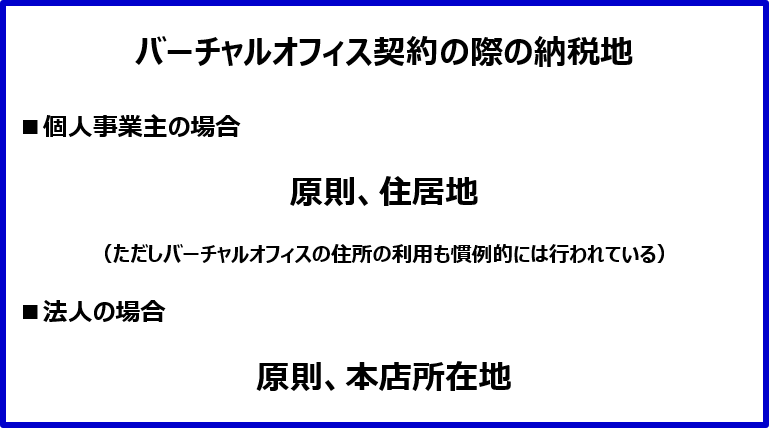 なお、納税地を本店所在地とした場合でも、税務署から届く郵便物については別の住所に送付してもらうことができるので、納税地をバーチャルオフィスの住所として郵便物の送付先を自宅住所に送付してもらうといったことは可能です。(2021年8月に「国税局電話相談センター」で確認済)