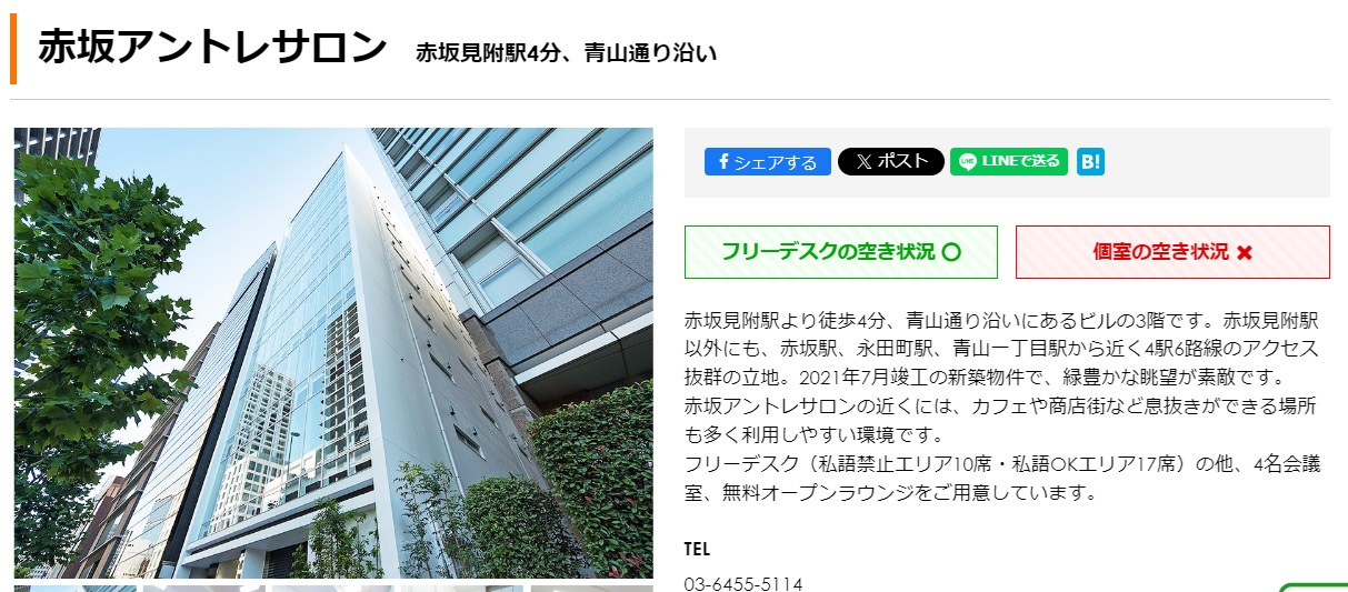 シェアオフィス・バーチャルオフィス@東京都千代田区|ナレッジソサエティ > バーチャルオフィス > バーチャルオフィスまとめ > 赤坂エリアのバーチャルオフィス一覧【2024年版】 > akasakaantore