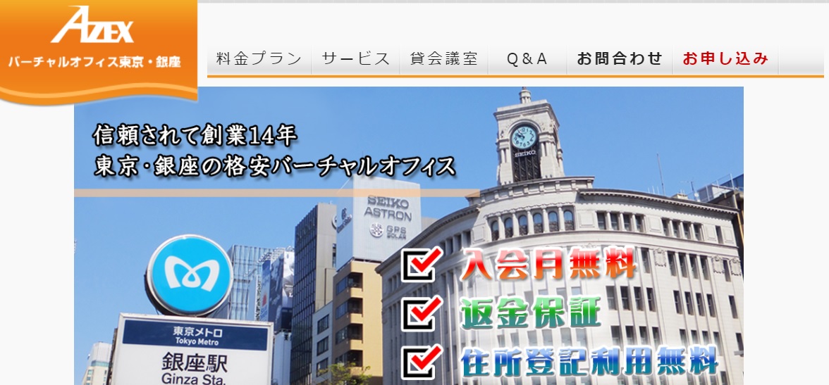 株式会社エイゼックスが運営するバーチャルオフィスです。 あらゆるビジネスシーンに対応するオフィスサービスを提供しております。住所のみ利用したい方から、ビジネスをバリバリこなすヘビーユーザまで、すべての方々の要望に応えるサービスを展開しています。 7つのプランがあり、必要なサービスを必要なときだけ選択できます。法人登記可能な住所と選べる郵便転送プランのシルバーコースは、入会金5,000円、月額3,500円です。シルバーコースのサービスに専用電話番号と電話転送が付いたゴールドコースは、入会金5,000円、月額6,500円で利用できます。 一番安価で法人登記可能な住所と郵便転送のみのプランは、入会金1,000円、月額1,000円で利用でき、起業初心者に最適です。 |