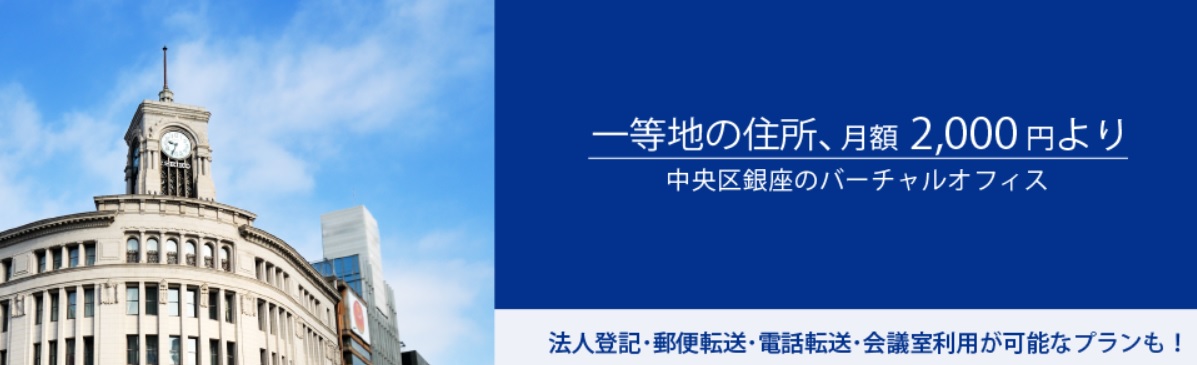 | 説明 | 税理士法人が運営しているバーチャルオフィスです。東京の一等地、銀座にオフィスを構えられます。 |