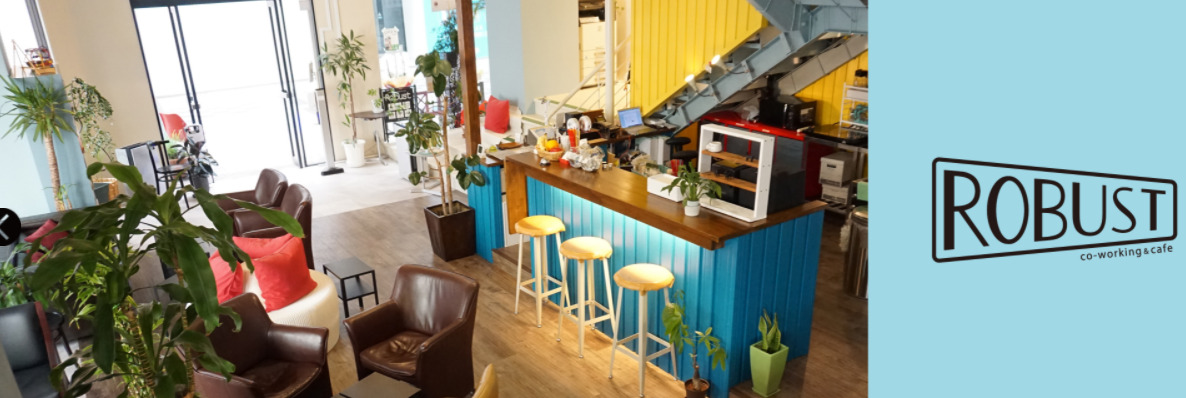 | 説明 | 「ROBUST(ロバスト)」は、大きく4つのエリアに分かれています。 1Fは「カフェ」と「コワーキング」。どちらも予約や会員登録は不要です。お気軽にお越しください。1Fには他にも、予約して利用する「会議室」も。最近では動画収録にも活用しています。そして、2Fは、月契約会員専用の「シェアオフィス」です。(公式HPより) |