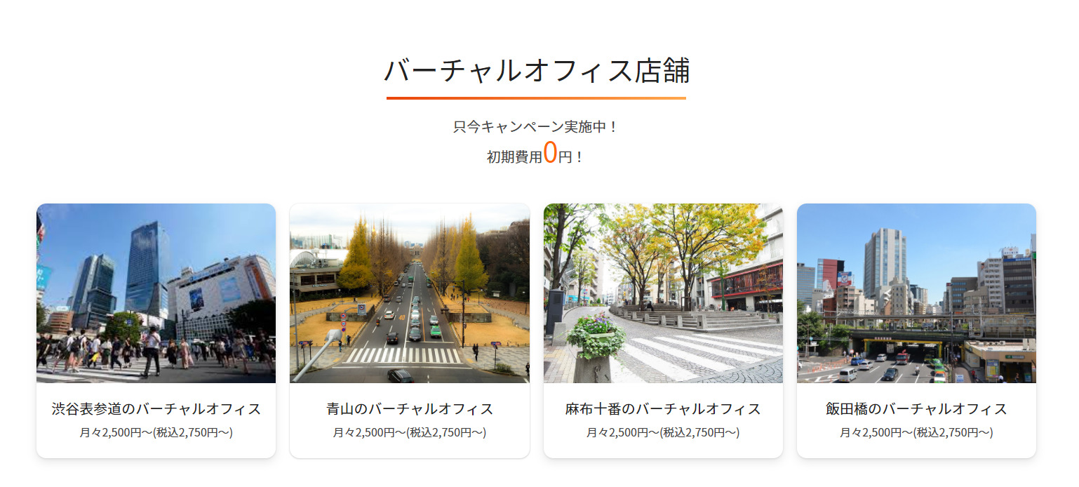 | 料金 | バーチャルオフィスプラン 4,950円 |