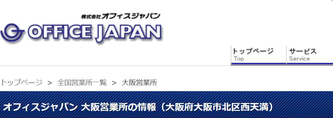 | 詳細 | オフィスジャパン 大阪営業所 |