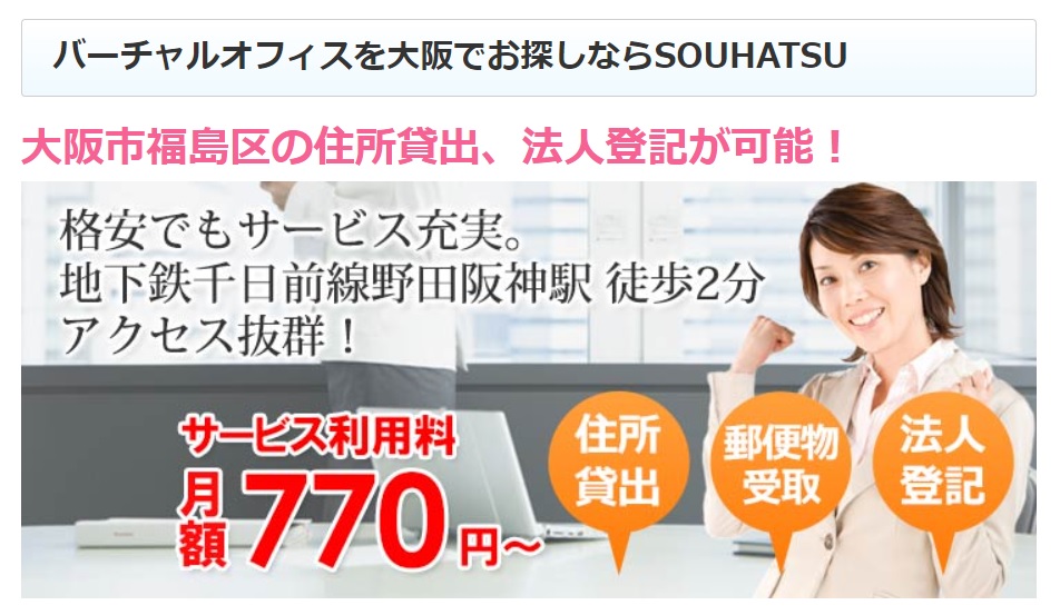 | 説明 | サービス内容は、住所利用、登記、社名表示、会議室利用/平日10:00~18:00まで・有料(公式HPより) |