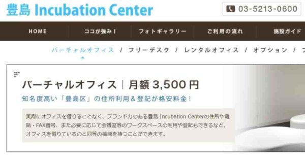 | 料金 | バーチャルオフィス格安コース 入会金 5,556円、月額費用 2,871円(年払 1,950円/月) バーチャルオフィス転送電話コース 入会金 5,556円 月額費用 6,482円(年払い 3,334円/月) バーチャルオフィス電話代行コース 入会金 6,482円 月額費用 7,871円 |
