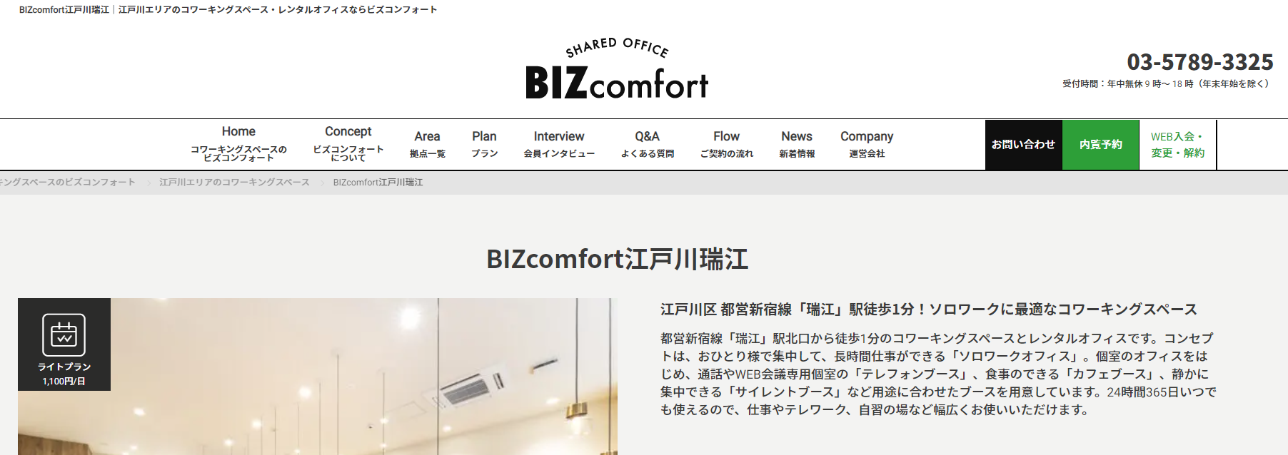 都営新宿線「瑞江駅」北口から徒歩1分のオフィスです。コンセプトは、おひとり様で集中して、長時間仕事ができる「ソロワークオフィス」。 個室のオフィスをはじめ、通話やWEB会議専用個室の「テレフォンブース」、食事のできる「カフェブース」、静かに集中できる「サイレントブース」など、用途に合わせたブースを用意しています。24時間365日いつでも使えるので、仕事やテレワーク、自習の場など幅広くお使いいただけます。(公式HPより) |