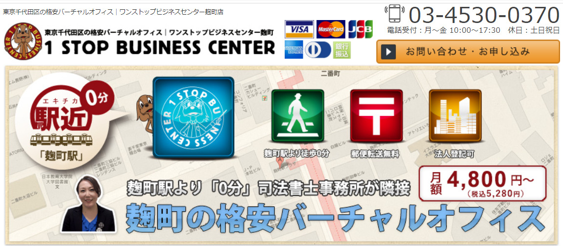 | 料金 | バーチャルオフィスプラン 4,500円 |