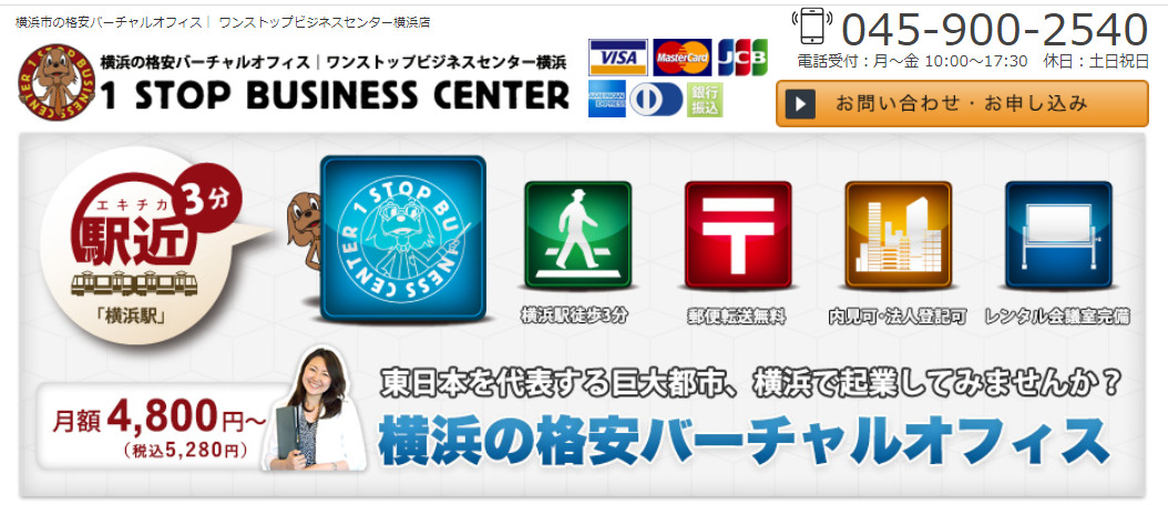 横浜駅からのアクセスも良く、月額990円~と格安なプランも豊富なバーチャルオフィスはネットショップオーナー様にも使いやすい内容が充実しています。